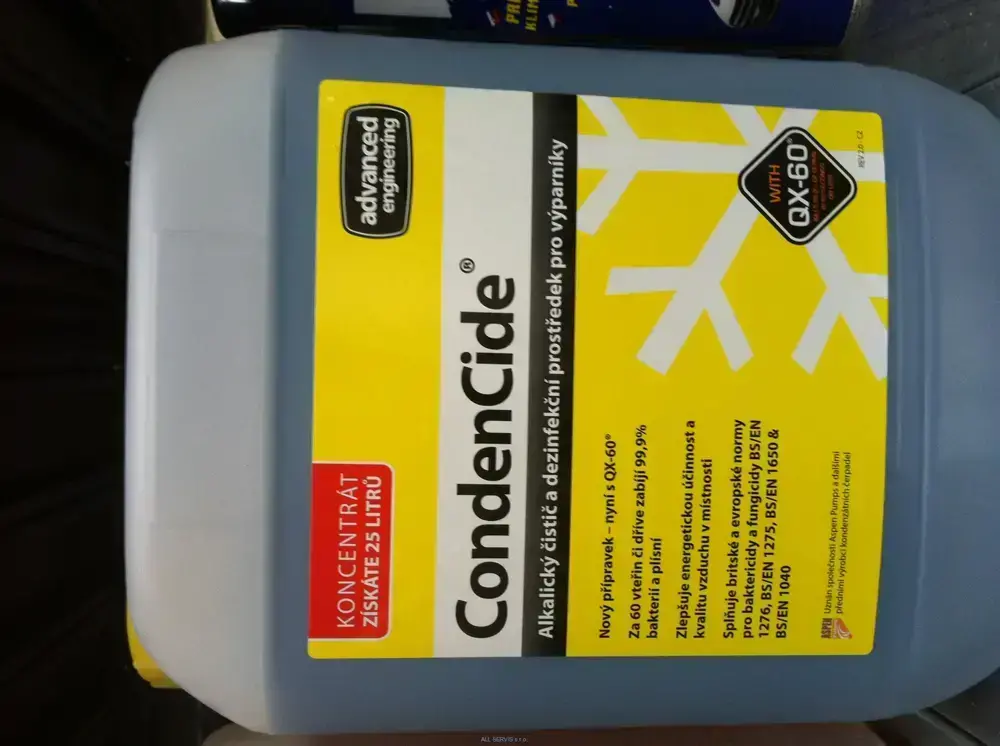 Bakterie, plísně a ostatní mikroby způsobují zápach a alergické reakce. CondenCide čistí a desinfikuje všechny kovové povrchy výparníků v chlazení a klimatizacích. Je ideálním prostředkem tam, kde se pracuje s potravinami. Obsahuje látku QX-60 zajišťující velmi účinnou desinfekci.